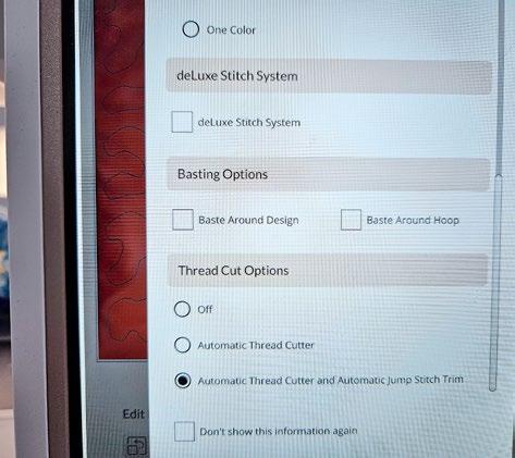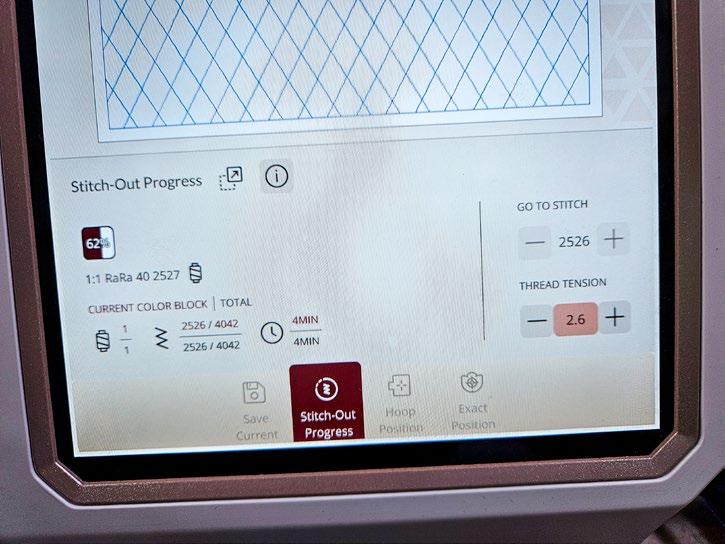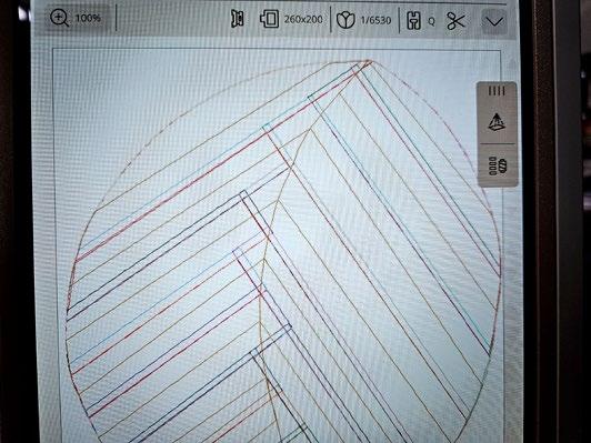 Here’s a tip when you get into Embroidery Stitch Out. There are many stitching lines in this design, and looking at the screen with all those lines is intimidating because you have no idea what line will stitch out next.