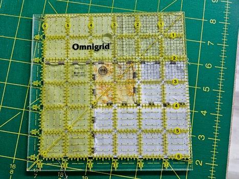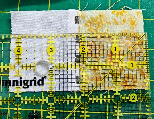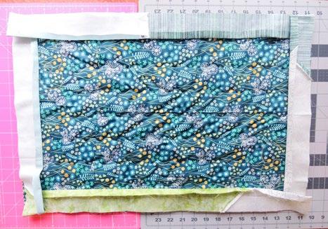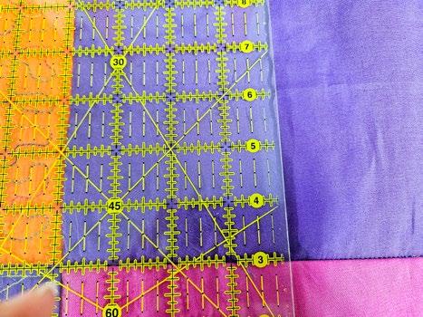 The next color block will secure it in place. Trim the excess away, leaving seam allowances.