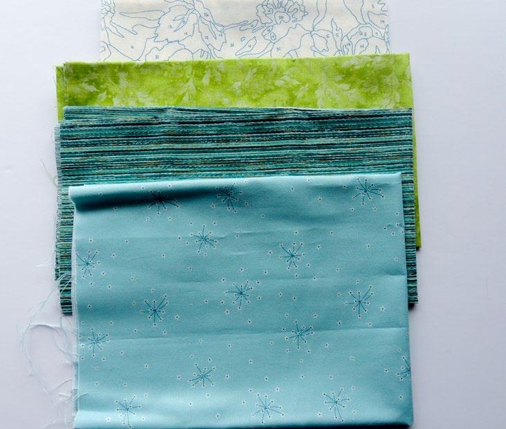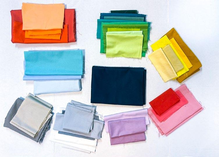 Pieces of fabric for the Circle the Seasons Table Topper (mostly solid cottons)