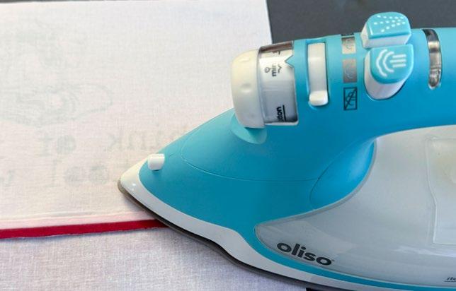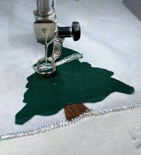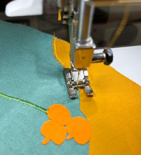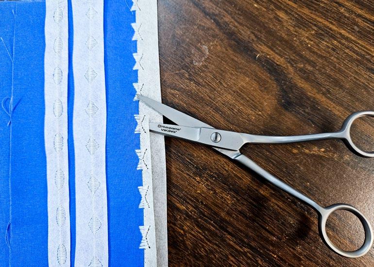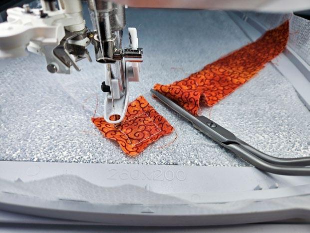 The next color block will stitch the fabric in place. I’ll use my Husqvarna VIKING Applique Scissors to trim the excess fabric. Again, be sure to leave excess for seam allowances.