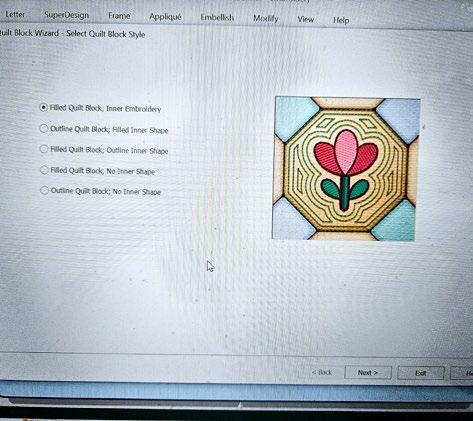 Open up the Color Block Options and select Ghost Mode. All the stitching lines remain on the screen, but only the one in the current Color Block shows up in color on the screen. The remainder of the lines are ‘ghosted’. This feature is invaluable for Patchwork in the Hoop, and I use it all the time for any of my embroideries.