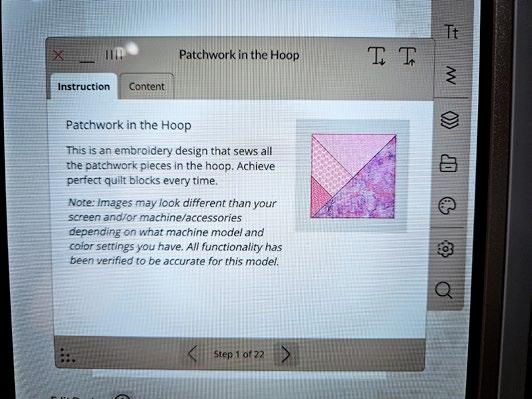 Here’s part of the tutorial for Patchwork in the Hoop. It’s so easy to access this information!