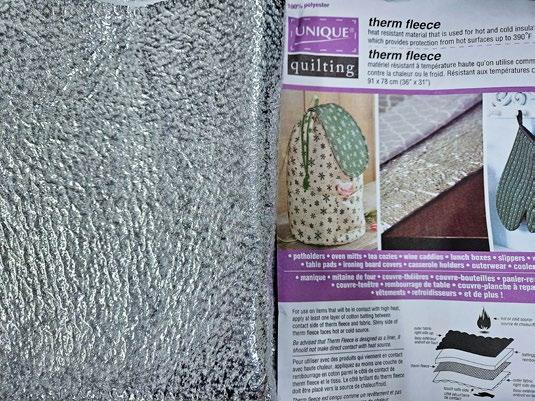 The first step is to gather the supplies. I’m making a hot mat, so I first need to get some UNIQUE therm fleece with a heat-resistant layer to protect table surfaces.