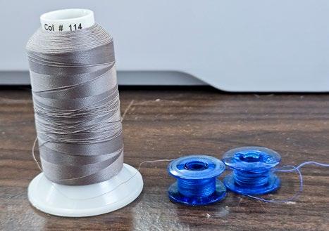 I switched from piecing thread to embroidery thread. Since this is a two-sided design where the stitches will show on the back, I wound a bobbin with a matching 40-weight thread.