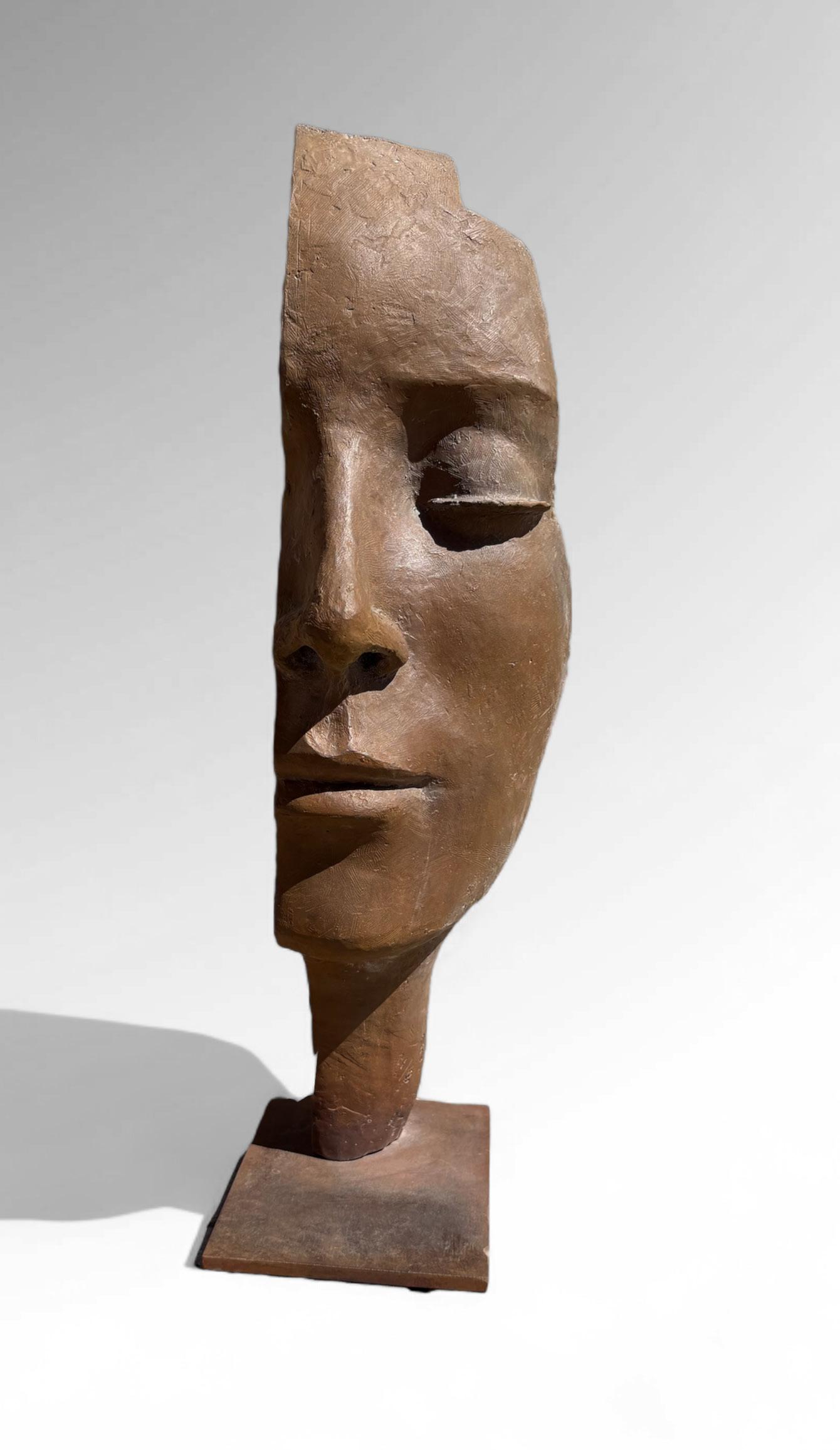 “The face imposes itself upon me, without my being able to remain deaf to its call or forget it—I mean, without my being able to cease being responsible for its misery,” wrote the philosopher Emmanuel Levinas in his book Humanism of the Other. Confronted with Béatrice Bizot’s sculpted faces— as open in their apparent generosity as they are opaque in their inward mystery—it is impossible not to hear the call that Levinas describes. Something summons us, solicits us, holds us, when we stand before these faces with extinguished gazes, closed eyes that nonetheless pierce us. If not for the grace of their features, it is the density of questions contained within them that so deeply unsettles us.