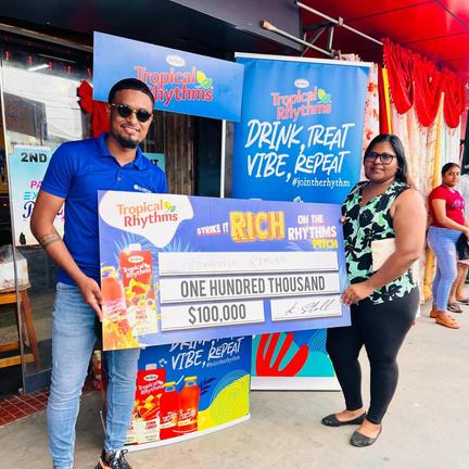 One lucky person walked away with a cash prize of $500, 000 while eleven won $100,000 each for the Strike it Rich on the Rhythms Pitch promotion over a course of two months beginning in November and concluding Deceomber 12th, 2024. All they had to do was purchase two Tropical Rhythm, either/or 475 ml or the 1 litre. This gave them a chance to enter once. The more they purchase the more their chances increased.