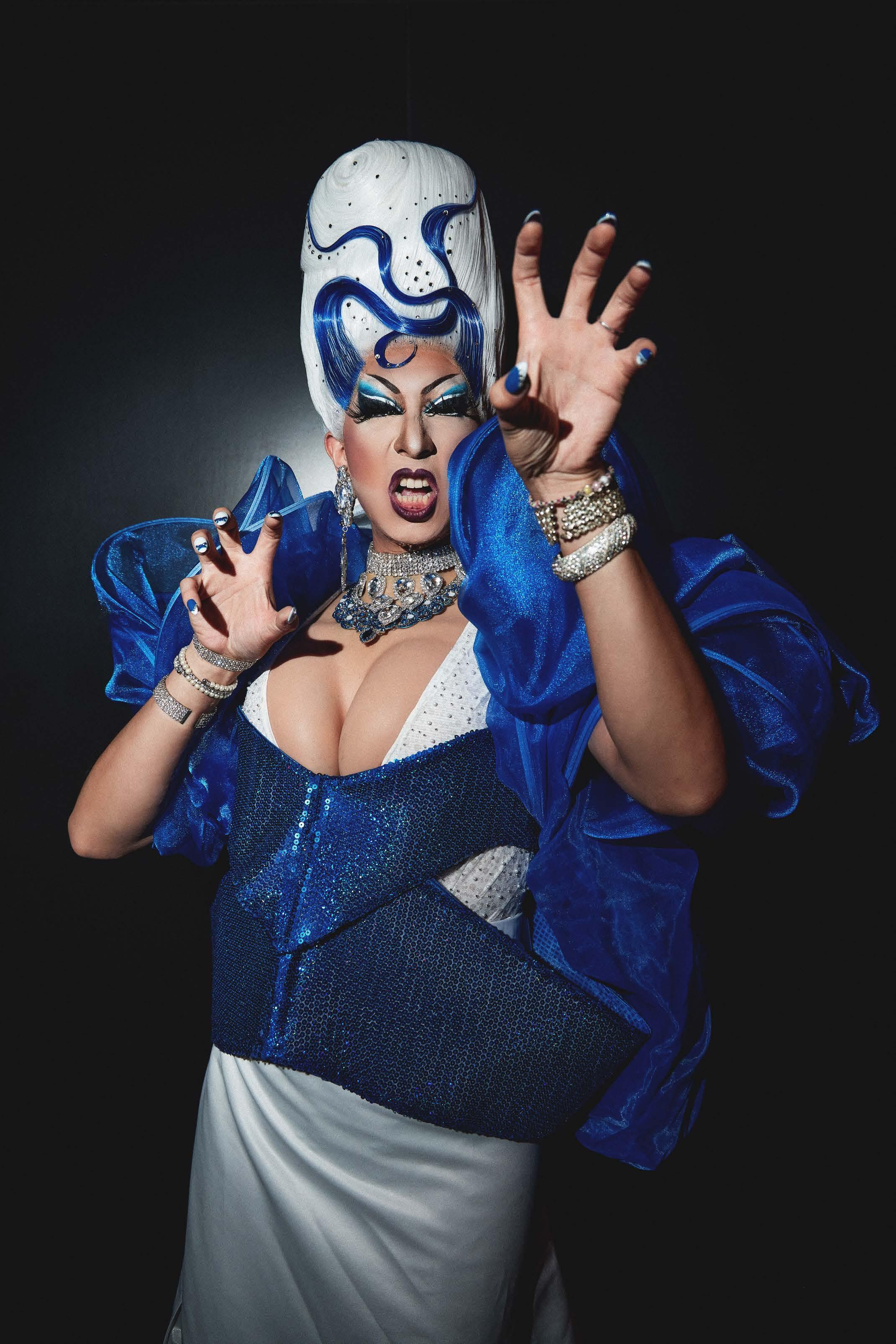 Her drag persona is elegant and graceful, carrying the strength and calm of a woman she once looked up to, now reimagined through her own body and artistry.