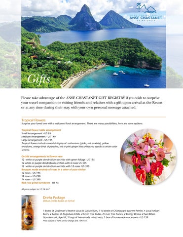 Please take advantage of the ANSE CHASTANET GIFT REGISTRY if you wish to surprise your travel companion or visiting friends and relatives with a gift upon arrival at the Resort or at any time during their stay, with your own personal message attached.