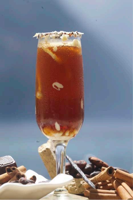 Rum and Cofee Liqueur fnished with Coconut Cream, Nutmeg and Angostura Bitter