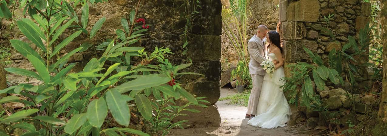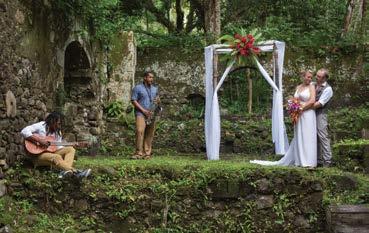 Bridesandgroomsmaychoosetheirfavoritelocation fortheceremonyonour600-acreestate.Popular locationsaretheANSECHASTANETTreehouse,KaiMer cliff-sidecabana,EmeraldFarmoroneofourtwo beaches.Weddingscanalsobearrangedintheguests’ roomorpatio,inourhistoricalestateofAnseMamin,on boardoneofourboatsorevenoffsiteatoneofour island’sbeautifulwaterfalls.Eachweddingistreatedas auniqueaffair,andtherearenostandardizedwedding programs.Thebrideandgroomcangetasinvolvedin alldetailsoftheweddingceremonyastheywishand candecideonthelocationoftheirweddingaftertheir arrival.