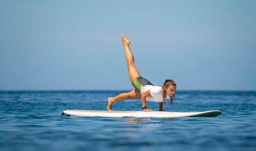 Standup paddleboard yoga is asanas (yoga poses) practiced on the paddleboard in the most serene setting you can imagine. Moving to the water adds a whole new dimension to your practice, on the water you have no choice but to be present and focused. Your mind has no desire to wonder off to other thoughts about the past or the future. You can let go of your expectations and judgments with your mind focused on the foundations of yoga. It´s a fun practice with some major benefits, for the mind as well as the body, and the best part is if it gets too hot, then a cooling dip in the sea is not far.