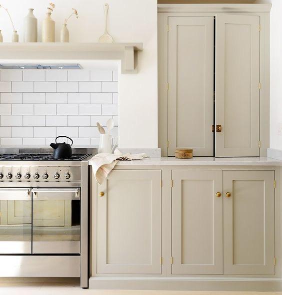 C. Painted cabinets a muted color (tan, blue, green, etc…)