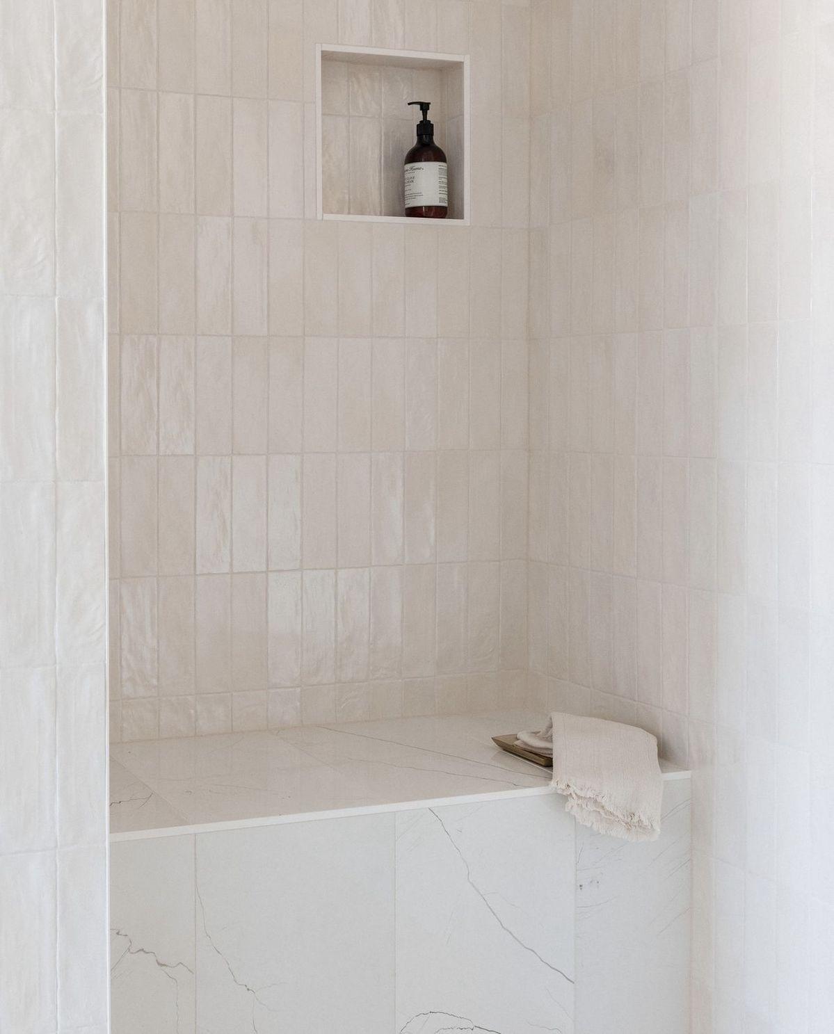 A. White/Ivory Zellige tile in shower