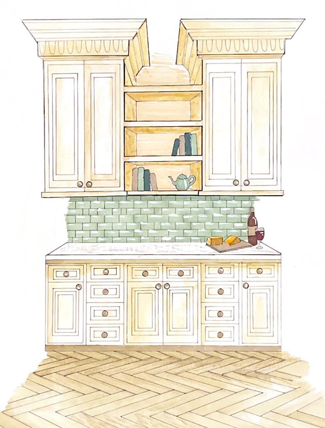 The bedrooms and private spaces of Mr. and Mrs. Pierre’s flat are complete, but the three main living spaces require revamping. Reflect the historic architectural features from Haussman-Era Parisian apartments in your design through mixed media hand-rendering