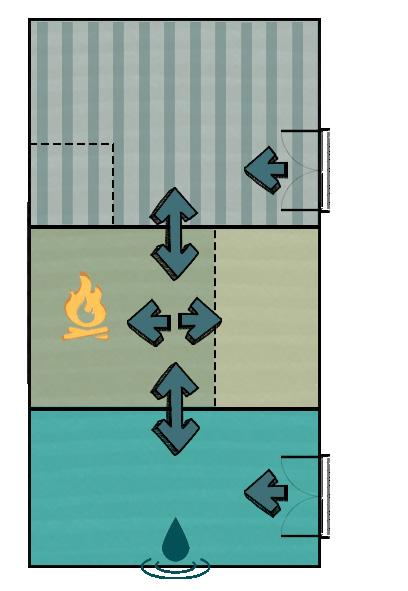 Aquamarine is outgoing but tends to feel overwhelmed in large public settings. Aquamarine is most vulnerable in public spaces; she must be extremely cautious, so she doesn’t reveal her secret. For this reason, the public space was not included in the proxemics study. She keeps her two best friends close, trusting them with her biggest secret. Aquamarine was raised in the ocean, a vast, open environment. Overall, the space should feel spacious, providing ample space to avoid feelings of restraint.