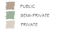 The floorplan for the Williams residence features an open plan with centralized public spaces. The foyer connects the the dining room, living room, and kitchen to provide an unobstructed path to the back patio, providing ease in wayfinding. The private and semi-private spaces flank the perimeter of the home, the separation between private and public spaces acts to support both rest and productivity. All hallways and doorways are at least 36” wide to provide flexibility and ease of use. Strategically placed windows allow natural light to illuminate the interior, nurturing a sense of connectedness between the built environment and natural world.