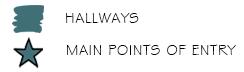 Landmarks are physical objects within the built environment that aid in navigation. Landmarks are placed throughout the design to indicate direction and foster a sense of familiarity as users navigate the space. The distinct landmarks are designed to be memorable, providing a navigational point of reference.