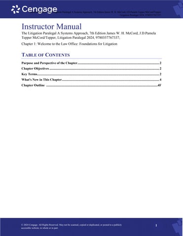 Instructor Manual The Litigation Paralegal A Systems Approach, 7th Edition James W. H. McCord, J.D.Pamela Tepper McCord/Tepper, Litigation Paralegal 2024, 9780357767337; Chapter 1: Welcome to the Law Office: Foundations for Litigation
