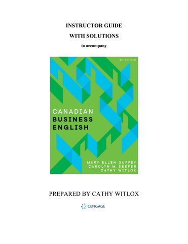 Enhance your teaching and learning of professional communication with the Instructor Solution Manual for Canadian Business English, 8th Edition by Mary Ellen Guffey, Carolyn M. Seefer, and Cathy Witlox. Covering all 21 chapters, this comprehensive manual provides clear, step-by-step solutions to exercises, writing assignments, and case studies, helping instructors deliver effective lessons and students strengthen their business communication skills. Key topics include writing emails, letters, reports, proposals, resumes, and professional presentations, all tailored to Canadian business standards. Perfect for classroom instruction, assignments, and exam preparation, this manual ensures accuracy, clarity, and practical guidance. Build strong professional communication abilities, improve workplace writing skills, and gain confidence in conveying ideas effectively in real-world Canadian business environments.