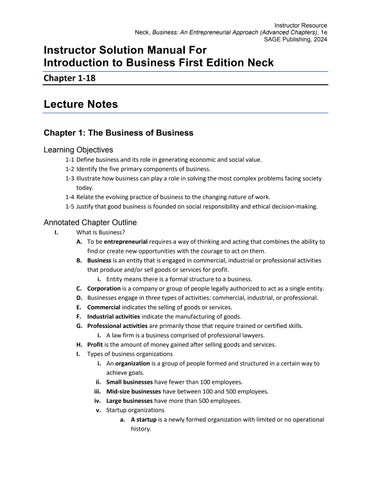 Instructor Solution Manual For Introduction to Business First Edition Neck Chapter 1-18
