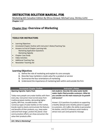 Instructor Solution Manual For Marketing 6th Canadian Edition By Dhruv Grewal, Michael Levy, Shirley Lichti Chapter 1-17