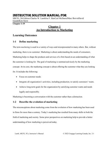 Instructor Solution MANUAL For MKTG, 5th Edition Charles W. LambJoe F. HairCarl McDanielMarc BoivinDavid GaudetKim Snow Chapter 1-19