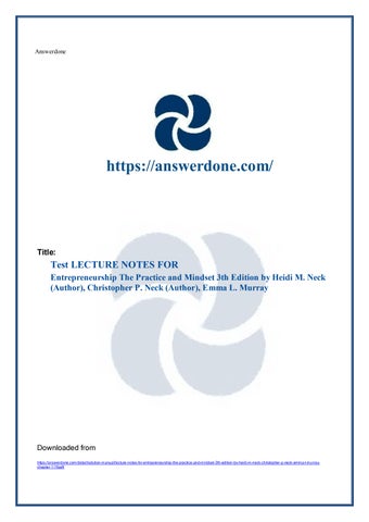 Downloaded from https://answerdone.com/detail/solution-manual/lecture-notes-for-entrepreneurship-the-practice-and-mindset-3th-edition-by-heidi-m-neck-christopher-p-neck-emma-l-murraychapter-1-16pdf/