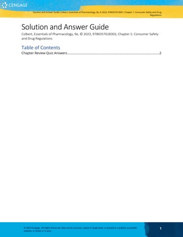 Solution and Answer Guide Colbert, Essentials of Pharmacology, 9e, © 2023, 9780357618301; Chapter 1: Consumer Safety and Drug Regulations