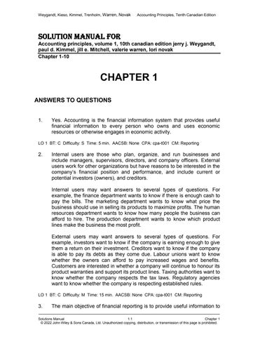 SOLUTION MANUAL FOR Accounting principles, volume 1, 10th canadian edition jerry j. Weygandt, paul d. Kimmel, jill e. Mitchell, valerie warren, lori novak Chapter 1-10