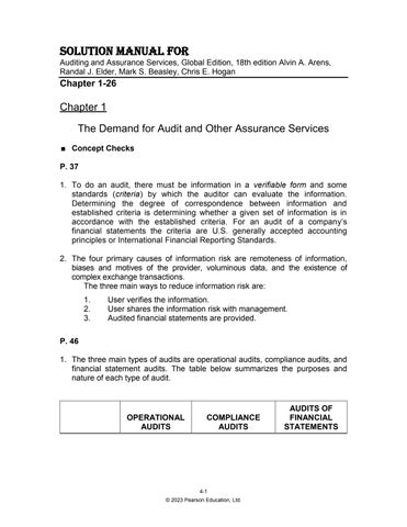 Solution Manual For Auditing and Assurance Services, Global Edition, 18th edition Alvin A. Arens, Randal J. Elder, Mark S. Beasley, Chris E. Hogan