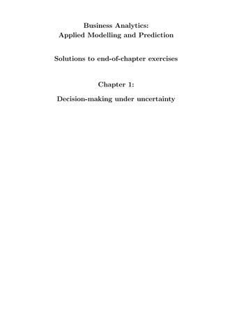Enhance your understanding of data-driven business decision making with the Solution Manual for Business Analytics: Applied Modelling and Prediction, 1st Edition by James Abdey. This comprehensive solution manual provides step-by-step solutions to end-of-chapter exercises covering essential topics such as predictive modeling, regression analysis, classification techniques, time series forecasting, data mining, optimization, and practical applications of analytics in business scenarios. Designed for students, instructors, and professionals, it reinforces practical application of business analytics concepts and strengthens critical thinking, analytical reasoning, and problem-solving skills. Perfect for undergraduate, MBA, and professional analytics courses, this solution manual serves as an indispensable resource for mastering quantitative methods, excelling in assignments and exams, and applying predictive modeling techniques to real-world business decisions.