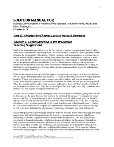 Business Communication A Problem Solving Approach 1e Kathryn Rentz, Paula Lentz, Marco Campagna Chapter 1-15