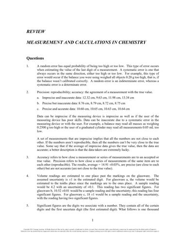REVIEW MEASUREMENT AND CALCULATIONS IN CHEMISTRY 4XHVWLRQV