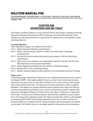 SOLUTION MANUAL FOR CONTEMPORARY ADVERTISING 17E MICHAEL WEIGOLD AND WILLIAM ARENS Chapter 1-18