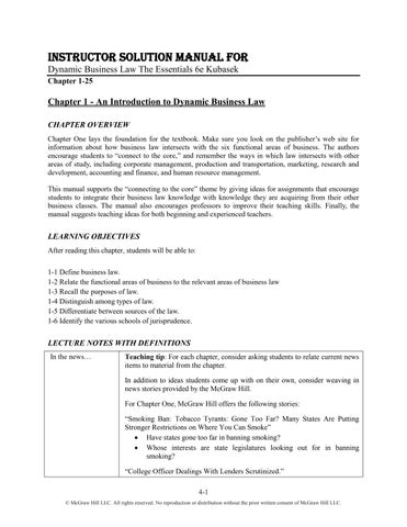 Instructor Solution Manual For Dynamic Business Law The Essentials 6e Kubasek Chapter 1-25