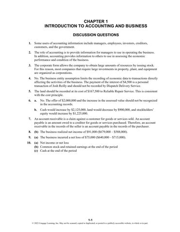 CHAPTER 1 INTRODUCTION TO ACCOUNTING AND BUSINESS DISCUSSION QUESTIONS 1.