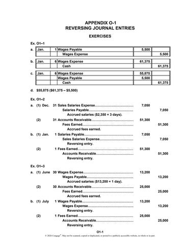 APPENDIX O-1 REVERSING JOURNAL ENTRIES EXERCISES Ex. O1–1 a. b. c.
