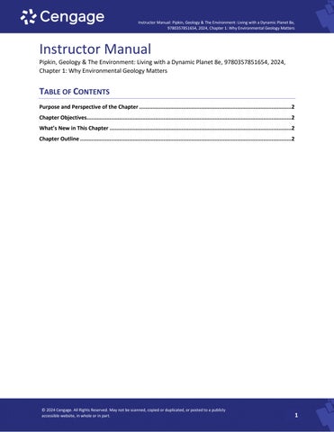 Instructor Manual Pipkin, Geology & The Environment: Living with a Dynamic Planet 8e, 9780357851654, 2024, Chapter 1: Why Environmental Geology Matters
