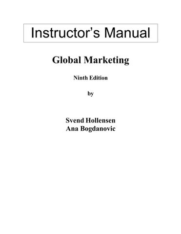 Download the complete Solution Manual for Global Marketing, 9th Edition by Svend Hollensen and Ana Bogdanovic. This comprehensive instructor resource provides detailed, structured solutions designed to support teaching, assignment preparation, and deeper understanding of global marketing strategies and international market dynamics.