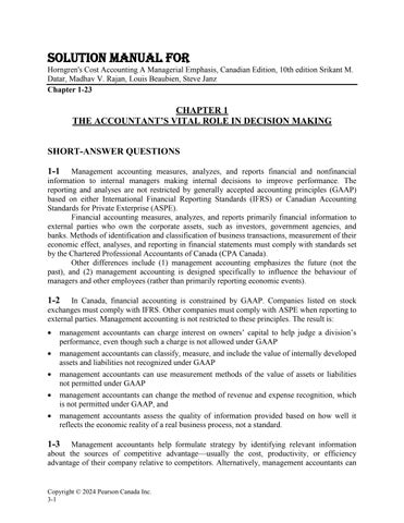 CHAPTER 1 THE ACCOUNTANT’S VITAL ROLE IN DECISION MAKING SHORT-ANSWER QUESTIONS 1-1