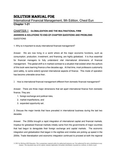 Solution Manual For International Financial Management, 9th Edition, Cheol Eun Chapter 1-21 CHAPTER 1