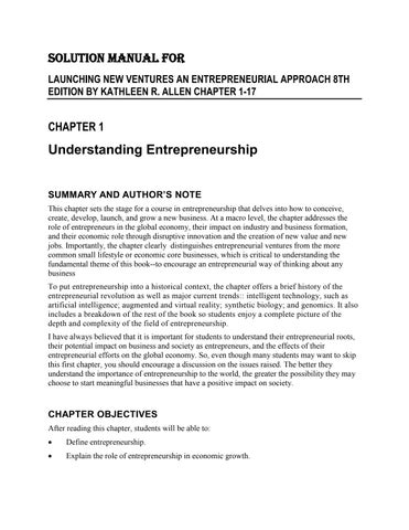 SOLUTION MANUAL FOR LAUNCHING NEW VENTURES AN ENTREPRENEURIAL APPROACH 8TH EDITION BY KATHLEEN R. ALLEN CHAPTER 1-17