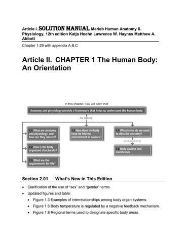 Article I. Solution Manual Marieb Human Anatomy & Physiology, 12th edition Katja Hoehn Lawrence W. Haynes Matthew A. Abbott Chapter 1-29 with appendix A,B,C