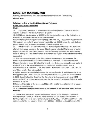 Solution Manual For Pathways to Astronomy, 2025 Release Stephen Schneider and Thomas Arny Chapter 1-86