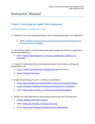 Instructor Manual Chapter 1: Purchasing and Supply Chain Management Learning Objectives and Resource List 1.1: Identify the role of the purchasing manager, buyer, and purchasing agent in an organization.