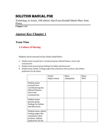 Answer Key Chapter 1 Team Time A Culture of Sharing