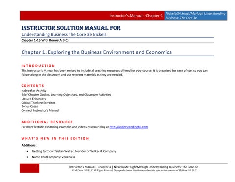 Instructor Solution Manual For Understanding Business The Core 3e Nickels Chapter 1-16 With Bouns(A B C)