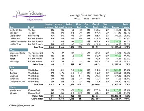 Beverage Sales and Inventory Week of 10/9/28 to 10/13/28 Starting Beer Regular Ol' Beer