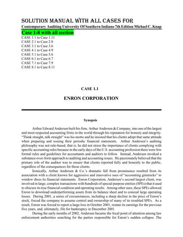 Solution Manual with All cases for Contemporary Auditing University Of Southern Indiano 7th Edition Michael C. Knap