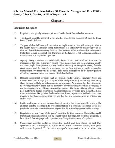 Solution Manual For Foundations Of Financial Management 12th Edition Stanley B Block, Geoffrey A Hirt Chapter 1-21